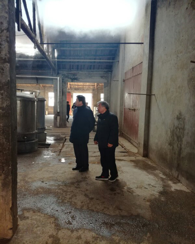 安徽迎駕集團董事長倪永培(左一)及代表團一行考察我廠釀造車間